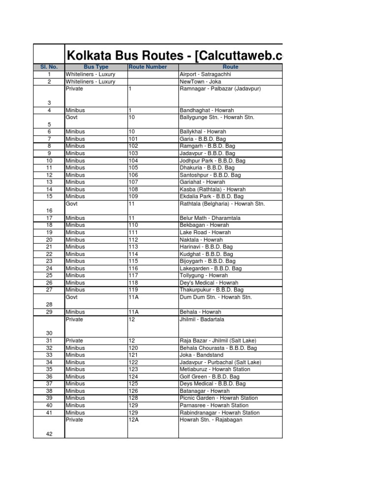 Kolkata City Bus Routes | PDF | Kolkata | Public Transport